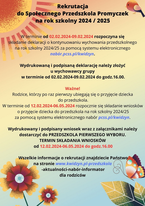 W terminie od 02.02.2024-09.02.2024 rozpoczyna się składanie deklaracji o kontynuowaniu wychowania przedszkolnego na rok szkolny 2024/2025