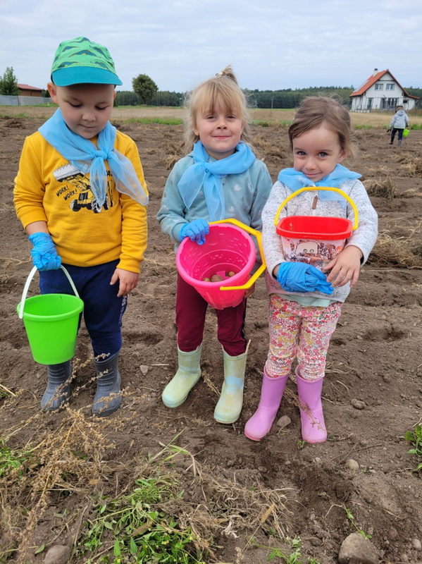 Uczestniczenie dzieci w wykopkach ziemniaków, zapoznanie z wyglądem maszyn rolniczych.