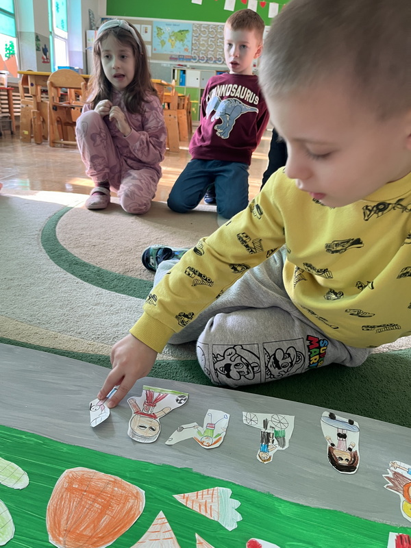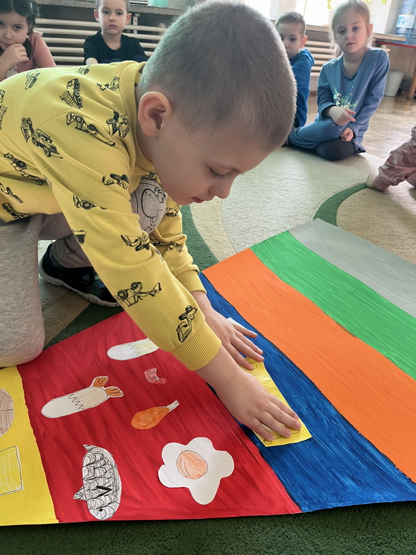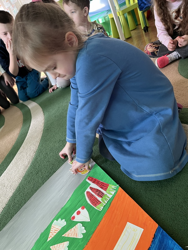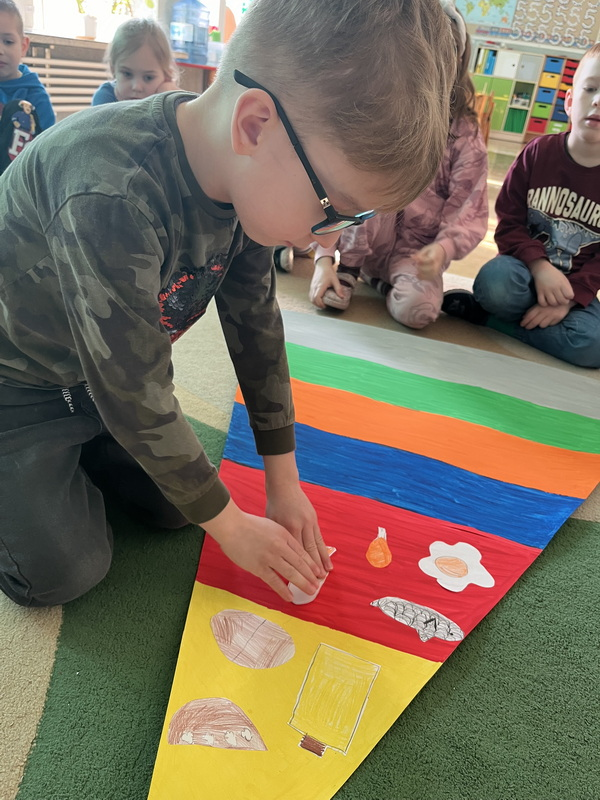 16.02.2024 - Grupa zielona i "Starszaki samodzielnie stworzyły piramidę zdrowego żywienia" Opublikowano: 16 luty 2024 Grupa Zielona (2023-2024)