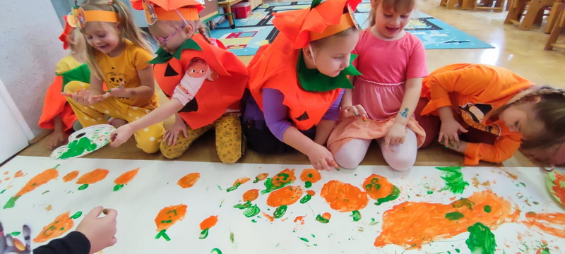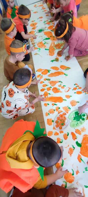 Celem święta było rozwijanie aktywności i wyobraźni twórczej poprzez różnorodne wykorzystanie dyń w działalności plastyczno-technicznej, ruchowej i zdrowotnej dziecka.