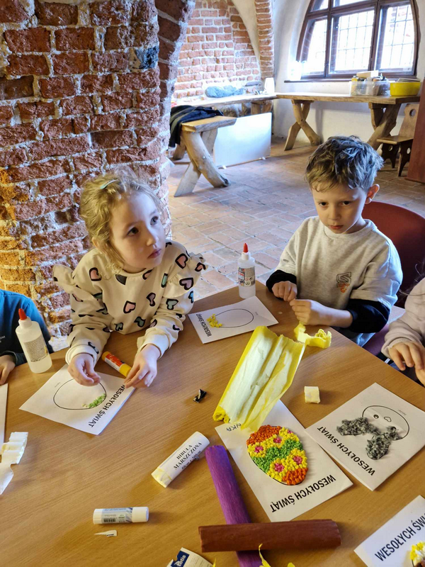 10.04.2025 - Grupa Rumianki i "Warsztaty Wielkanocne" Opublikowano: 10 kwiecień 2025 W muzeum odbyły się warsztaty na temat Wielkanocy. Dzieci wykonywały prace plastyczne związane z symbolami wielkanocnymi, rozwijając swoją kreatywność oraz wiedzę o tradycjach świątecznych. Warsztaty były pełne radości i twórczej atmosfery. Grupa Rumianki (2024-2025)