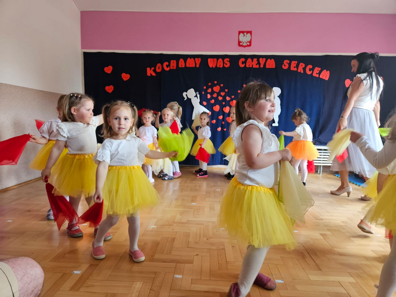 Z okazji Dnia Mamy i Taty nasi mali artyści zamienili się w prawdziwych aktorów, piosenkarzy i tancerzy. Były wierszyki, piosenki i układy taneczne, które rozgrzały serca wszystkich rodziców do czerwoności! Po występie dzieci wręczyły własnoręcznie przygotowane upominki – trochę krzywe, bardzo kolorowe i absolutnie bezcenne. A na koniec?  Mnóstwo uścisków. Dziękujemy wszystkim rodzicom za obecność – i za to, że są najlepsi na świecie!❤️❤️❤️