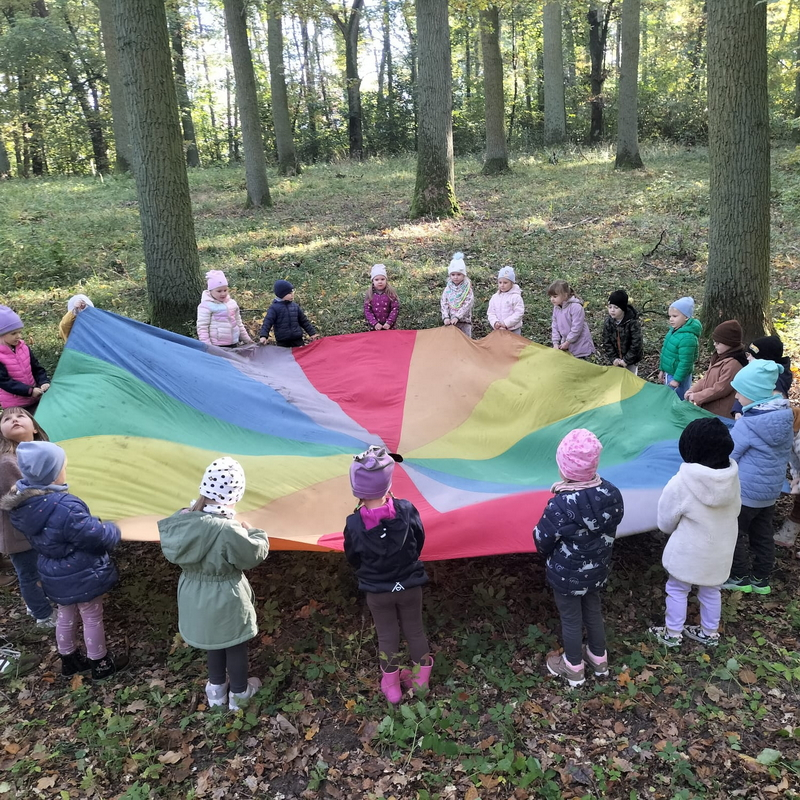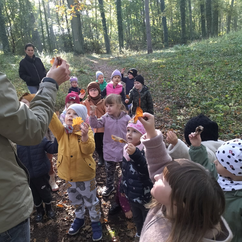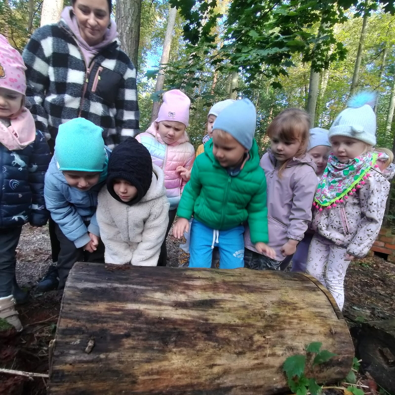 Było mnóstwo radości, zabawy i odkrywania tajemnic przyrody. Dzieci z zaciekawieniem przyglądały się drzewom, liściom i różnym zjawiskom przyrodniczym...