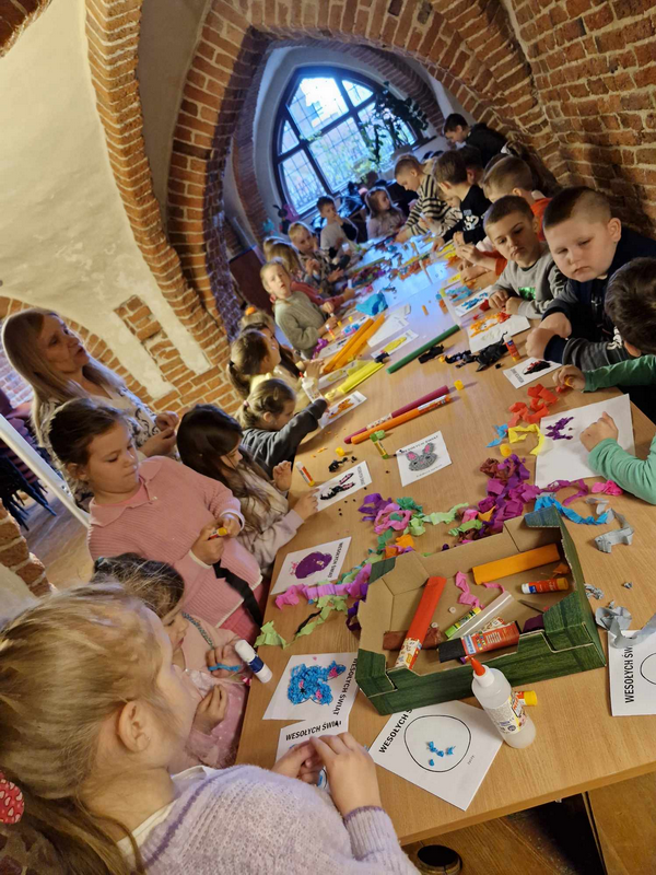 10.04.2025 - Grupa Rumianki i "Warsztaty Wielkanocne" Opublikowano: 10 kwiecień 2025 W muzeum odbyły się warsztaty na temat Wielkanocy. Dzieci wykonywały prace plastyczne związane z symbolami wielkanocnymi, rozwijając swoją kreatywność oraz wiedzę o tradycjach świątecznych. Warsztaty były pełne radości i twórczej atmosfery. Grupa Rumianki (2024-2025)