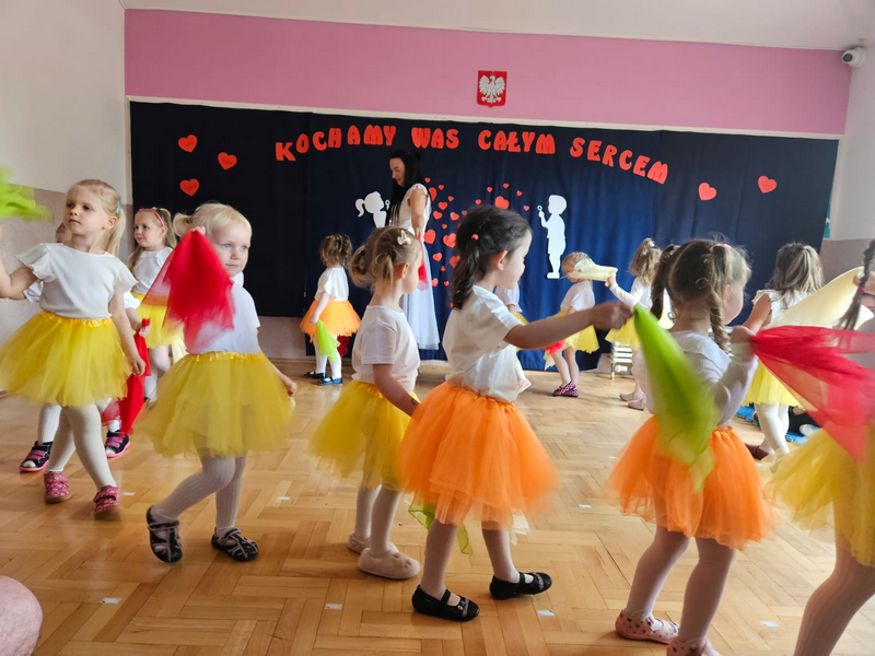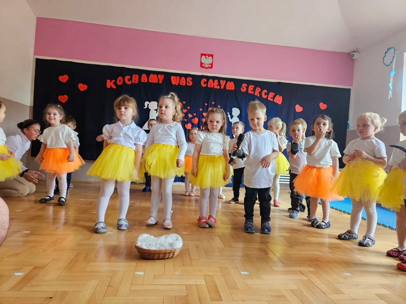 Z okazji Dnia Mamy i Taty nasi mali artyści zamienili się w prawdziwych aktorów, piosenkarzy i tancerzy. Były wierszyki, piosenki i układy taneczne, które rozgrzały serca wszystkich rodziców do czerwoności! Po występie dzieci wręczyły własnoręcznie przygotowane upominki – trochę krzywe, bardzo kolorowe i absolutnie bezcenne. A na koniec?  Mnóstwo uścisków. Dziękujemy wszystkim rodzicom za obecność – i za to, że są najlepsi na świecie!❤️❤️❤️