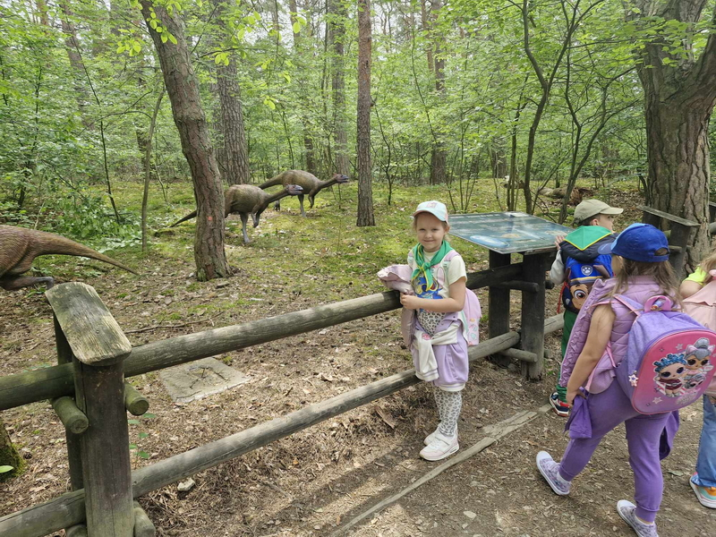 Celem wyjazdu było przybliżenie dzieciom świata dinozaurów oraz rozwijanie ich zainteresowań związanych z historią naturalną i przyrodą. Podczas spaceru po ścieżce edukacyjnej przedszkolaki miały okazję zobaczyć rekonstrukcje prehistorycznych stworzeń oraz poznać kolejne okresy epoki dinozaurów. Realistyczne modele zrobiły na dzieciach ogromne wrażenie i wzbudziły wiele ciekawych pytań. Dodatkową atrakcją było zwiedzanie parku miniatur, gdzie dzieci mogły zobaczyć najważniejsze zamki w Polsce w pomniejszonej skali. Dużym przeżyciem było również uczestnictwo w seansie w technologii 5D, który dostarczył wielu emocji. Na zakończenie dzieci spędziły czas na wspólnej zabawie w Parku Rozrywki oraz na placu zabaw.